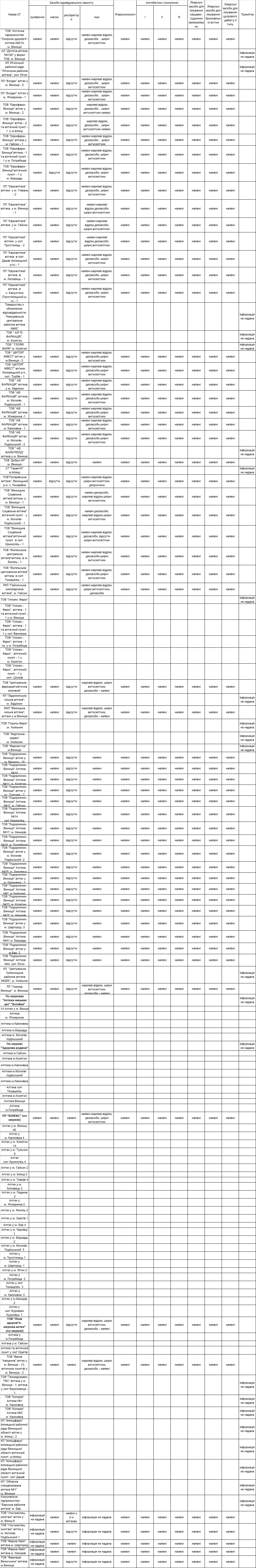 Наявність засобів індивідуального захисту, анитибіотиків та медикаментів в аптечних закладах області
