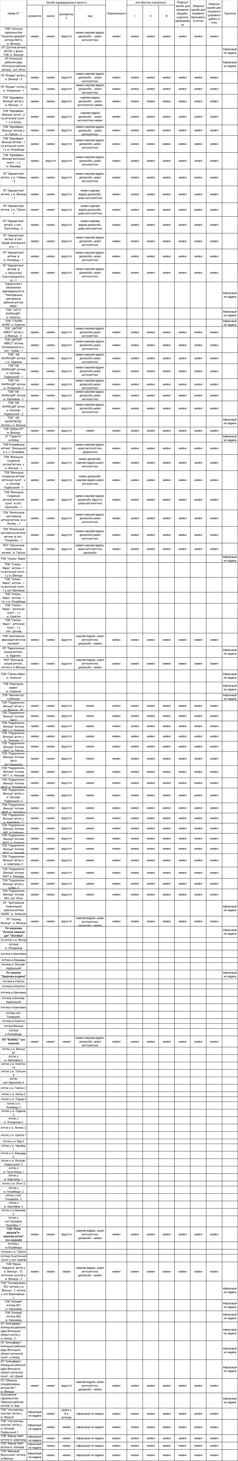 Наявність засобів індивідуального захисту, анитибіотиків та медикаментів в аптечних закладах області