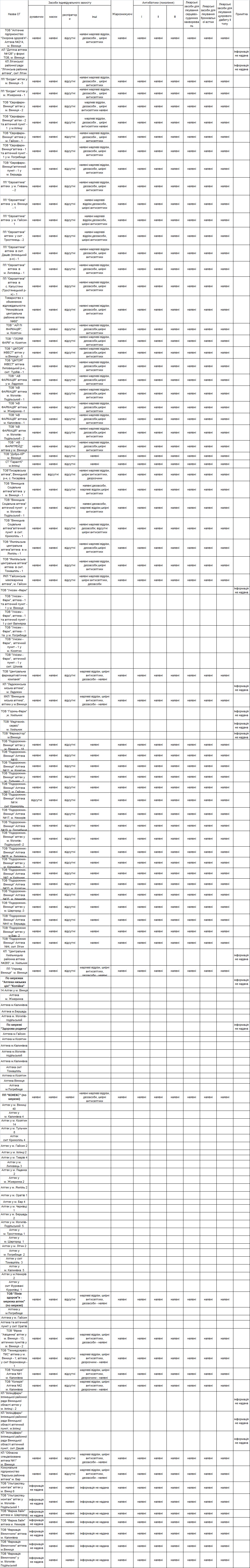 Наявність засобів індивідуального захисту, анитибіотиків та медикаментів в аптечних закладах області