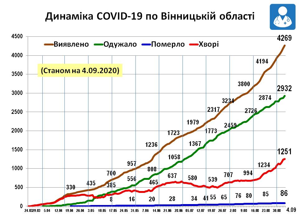 Динаміка COVID-19 по Вінницькій області станом на 4 вересня 2020 року