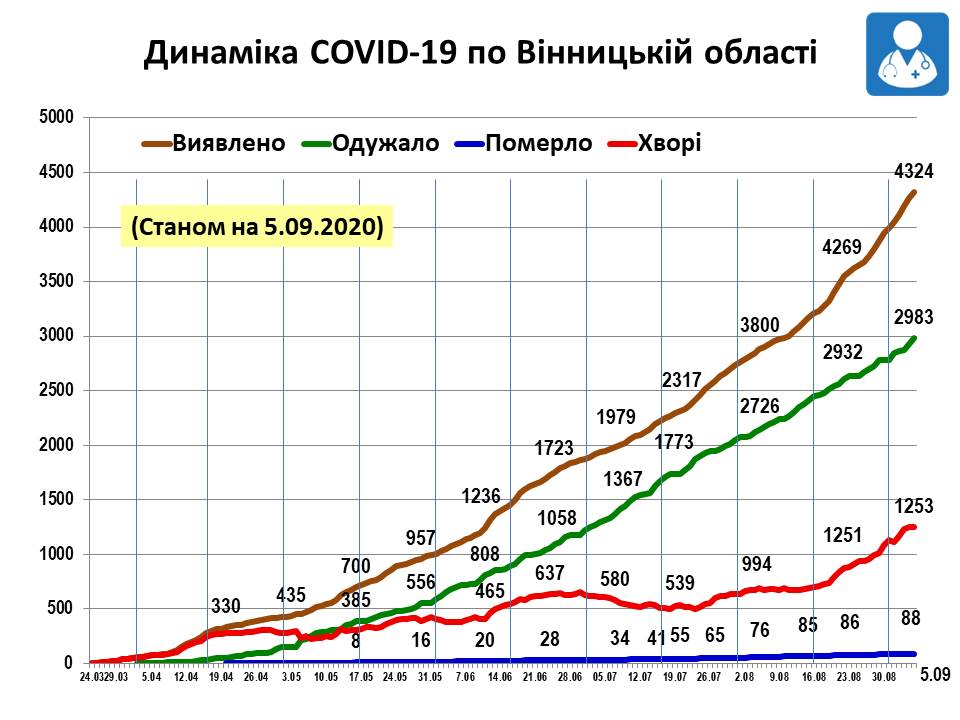 Динаміка COVID-19 по Вінницькій області станом на 5 вересня 2020 року