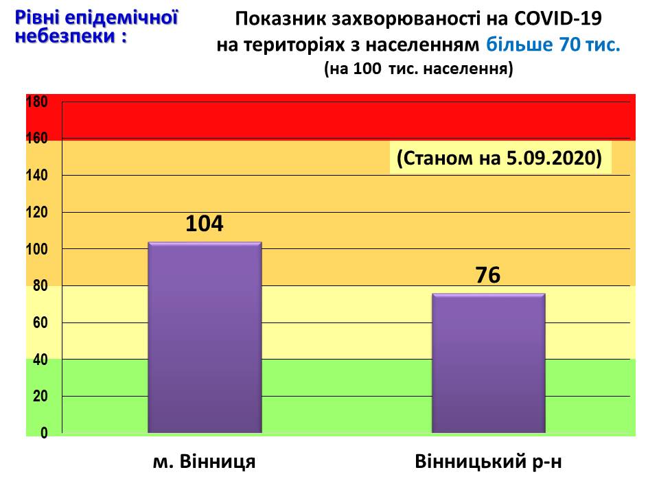 Показник захворюваності на COVID-19 на територіях з населенням більш як 70 тис. (на 100 тис. населення) станом на 5 вересня 2020 року