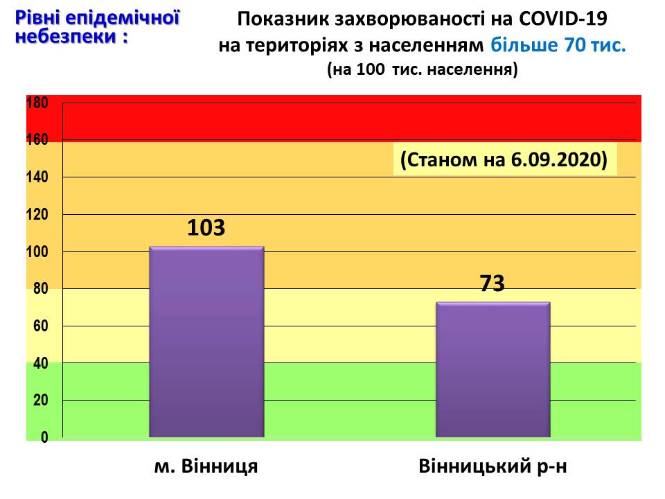 Показник захворюваності на COVID-19 на територіях з населенням більш як 70 тис. (на 100 тис. населення) станом на 6 вересня 2020 року