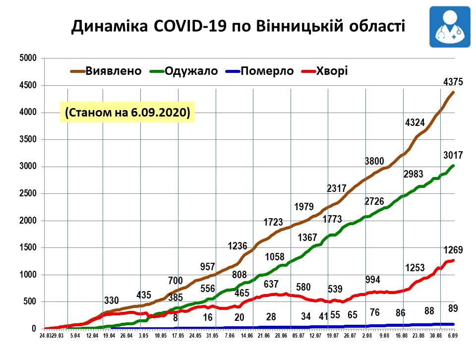 Динаміка COVID-19 по Вінницькій області станом на 6 вересня 2020 року