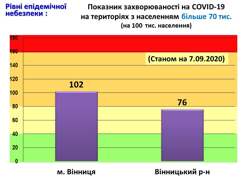 Показник захворюваності на COVID-19 на територіях з населенням більш як 70 тис. (на 100 тис. населення) станом на 7 вересня 2020 року