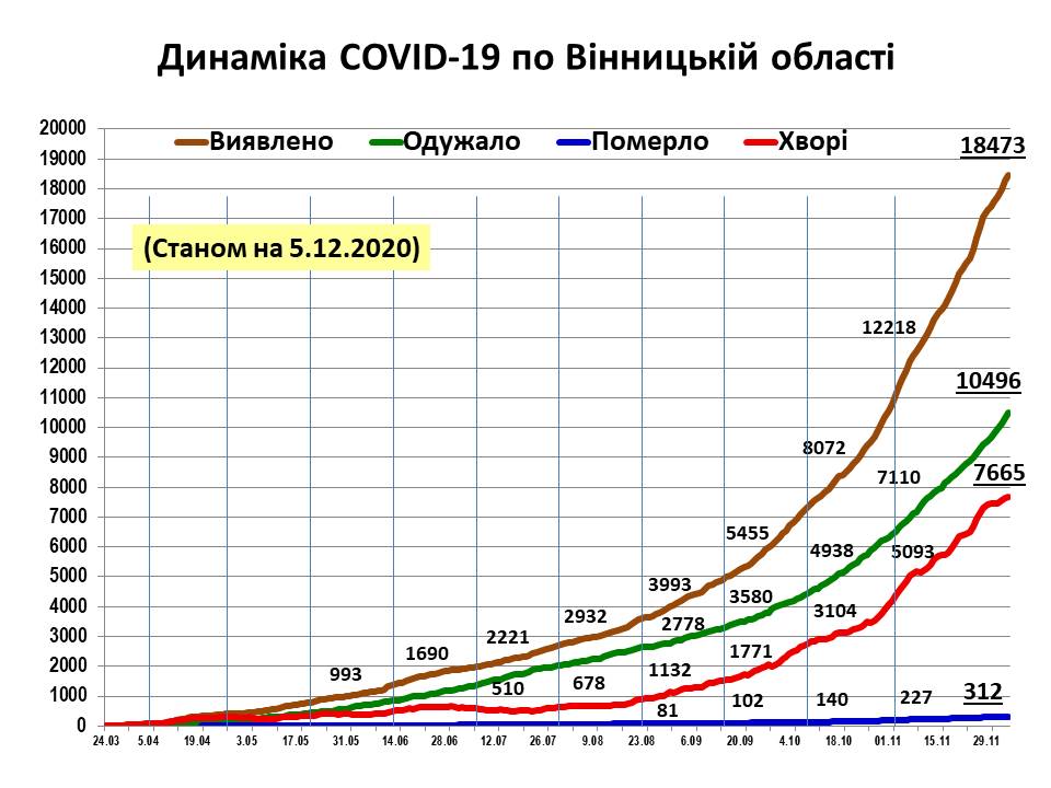 Всього в області зареєстровано 312 летальних випадків. За минулу добу зареєстровано 4 летальних випадки.