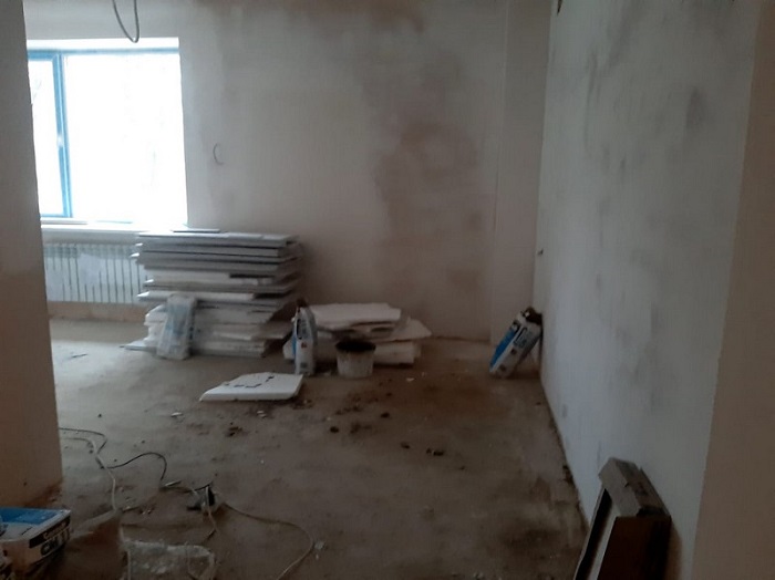 Наразі тут завершено роботи по штукатуренню внутрішніх стін приміщення. Тривають внутрішні інженерні роботи.