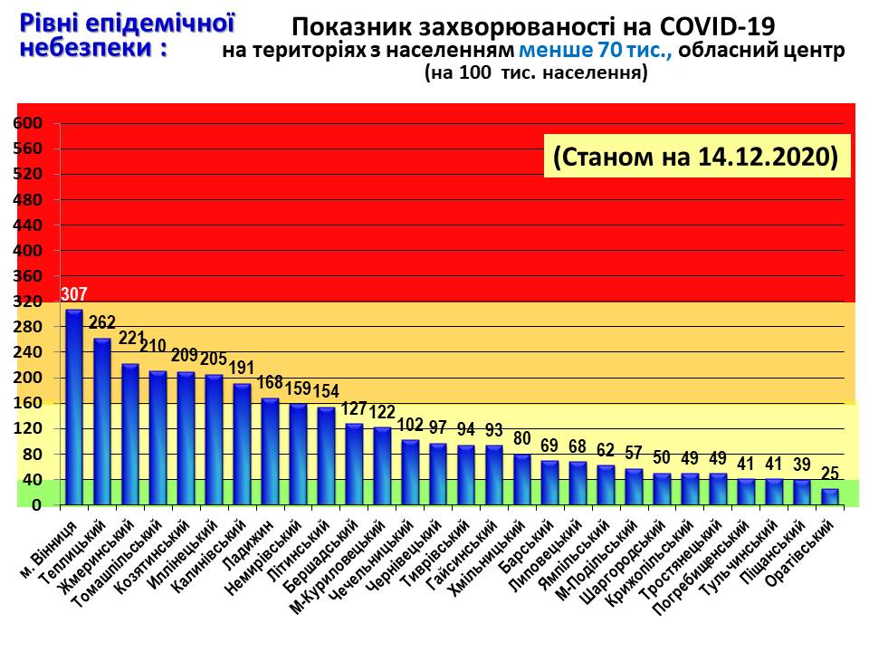 Коронавірус вперше виявлено у – 65 осіб: м. Вінниця – 20, Жмеринський - 13, Муровано-Куриловецький - 9, Вінницький - 5, Хмільницький - 4, Липовецький - 3, Бершадський - 3, Барський - 2, Калинівський - 1, Гайсинський, Могилів-Подільський, Оратівський, Теплицький та Тростянецький по 1 хворому.