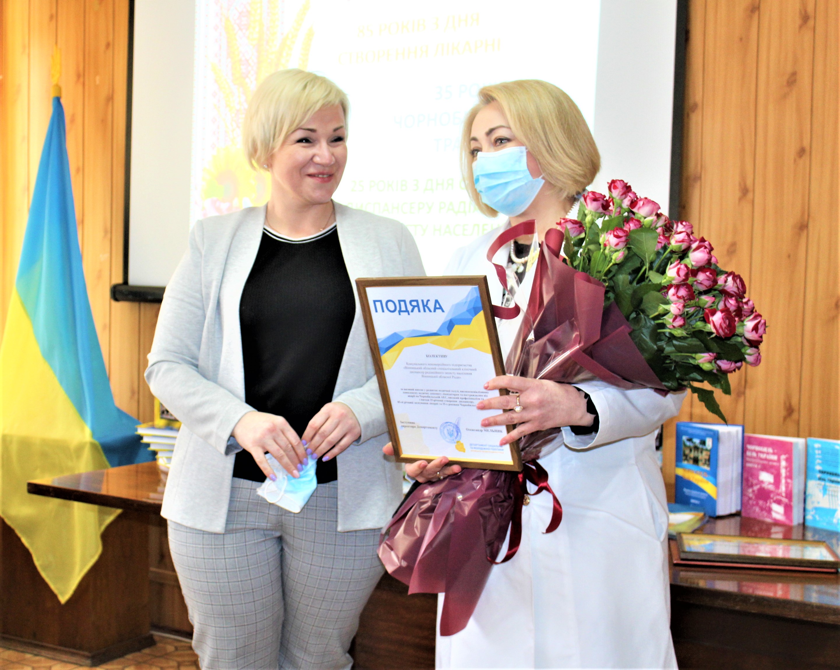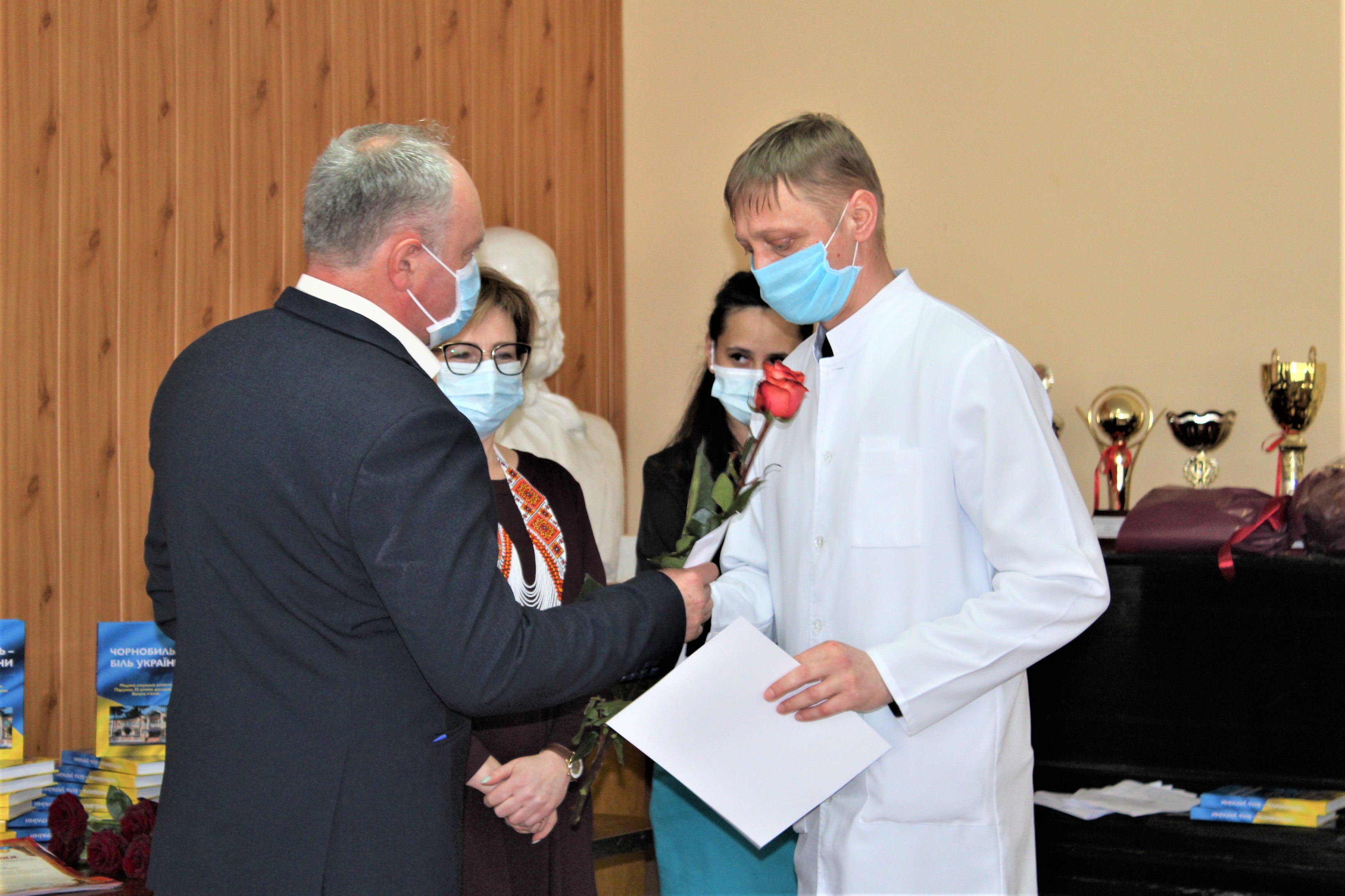 Керівництво області вручили грамоти від облдержадміністрації, обласної Ради та департаменту охорони здоров’я найкращим медичним працівникам «чорнобильського» диспансеру.