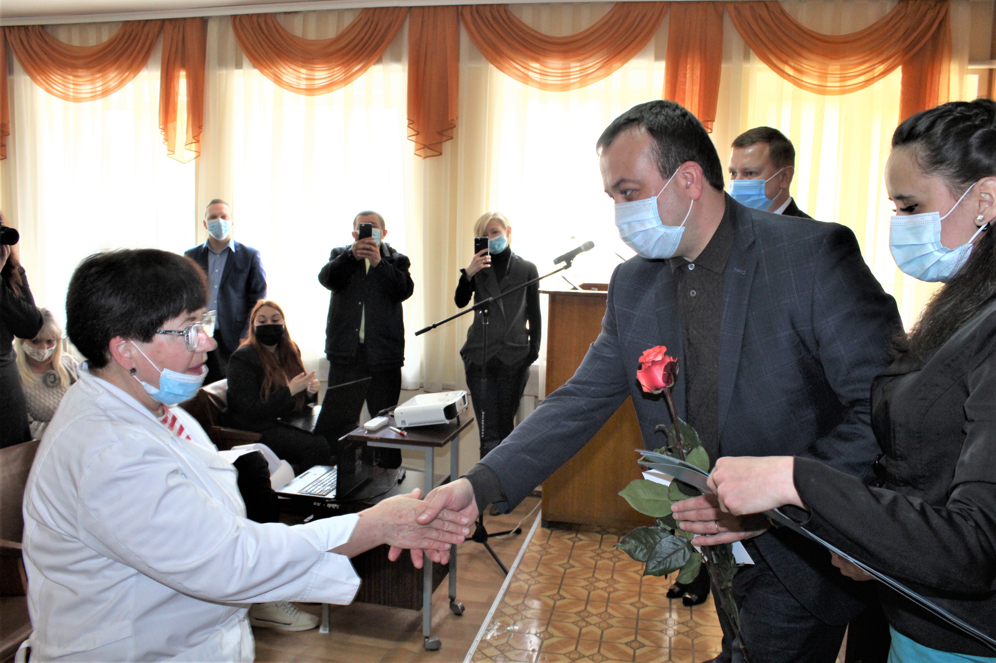Участь у вітанні колективу медичного закладу взяли голова облдержадміністрації Сергій Борзов та його перша заступниця Наталя Заболотна, заступниця директора обласного департаменту охорони здоров’я та реабілітації Тетяна Бондаренко та заступник голови обласної Ради Ігор Івасюк, керівництво Вінницького обласного центру громадського здоров’я Олександр Мельник, ліквідатори аварії на ЧАЕС, медики, громадськість.
