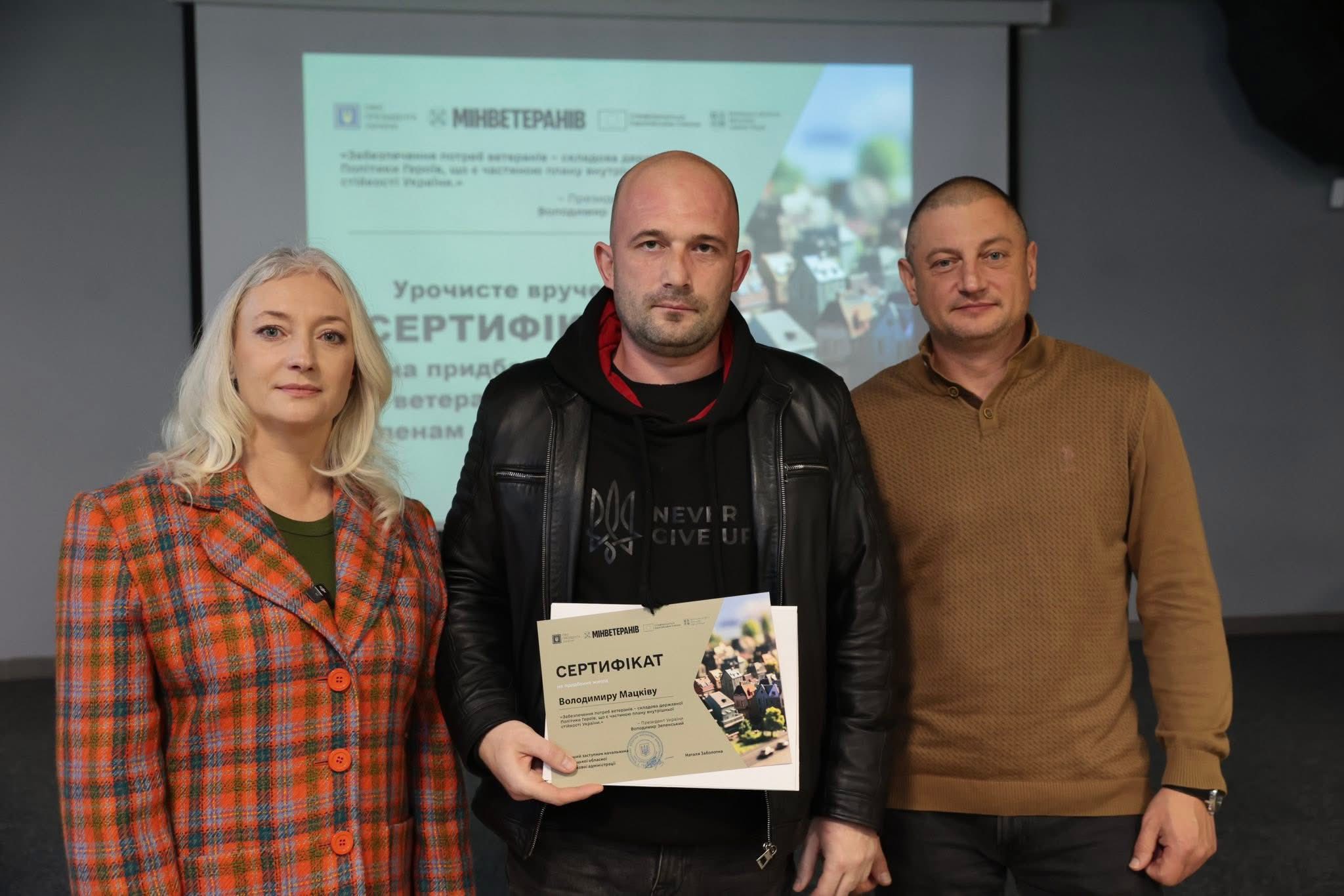 Вручення сертифікатів стало можливим завдяки Президенту України Володимиру Зеленському, Кабінету Міністрів України, Міністерству у справах ветеранів та фінансовій підтримці Європейського Союзу в межах інструменту Ukraine Facility.