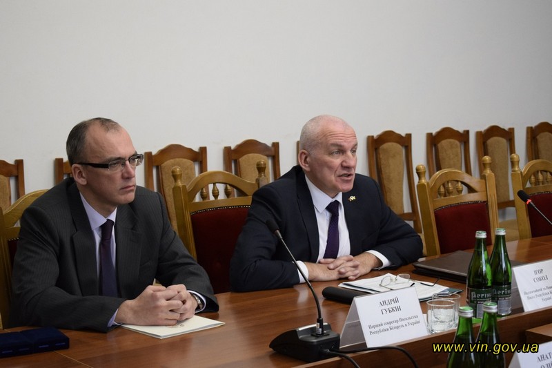Очільник області розповів білоруському дипломату про економічний розвиток регіону, наголосивши, що Білорусь на даний час займає четверте місце після Індії, Китаю та Євросоюзу за обсягами зовнішньоторговельних операцій Вінниччини. Відтак, активно експортують свою продукцію до Білорусі компанії «Миронівський КХП», ViOil, ВАТ «Брацлав» та інші. Імпортують вінничани з Білорусі переважно нафтопродукти, продукцію хімічної промисловості та сільськогосподарського машинобудування.