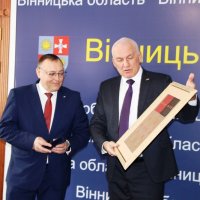 Керівники Вінниччини та Надзвичайний і Повноважний Посол Білорусі Ігор Сокол, на завершення зустрічі, обмінялись пам’ятними подарунками та сфотографувались.