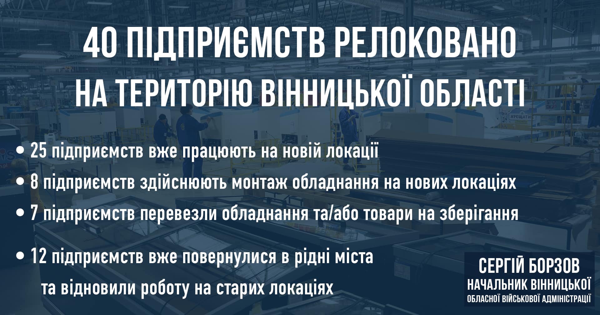За урядовою програмою на Вінниччину релоковано 40 підприємств, - Сергій Борзов
