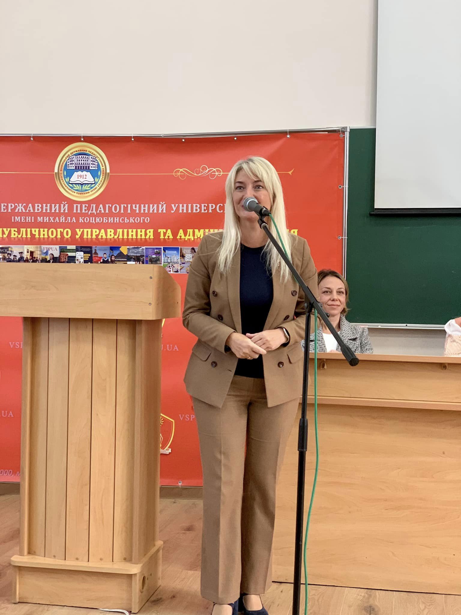 Перший заступник Начальника ОВА Наталя Заболотна привітала викладачів та першокурсників вишу під час церемонії посвячення у студенти факультету права, публічного управління та адміністрування.