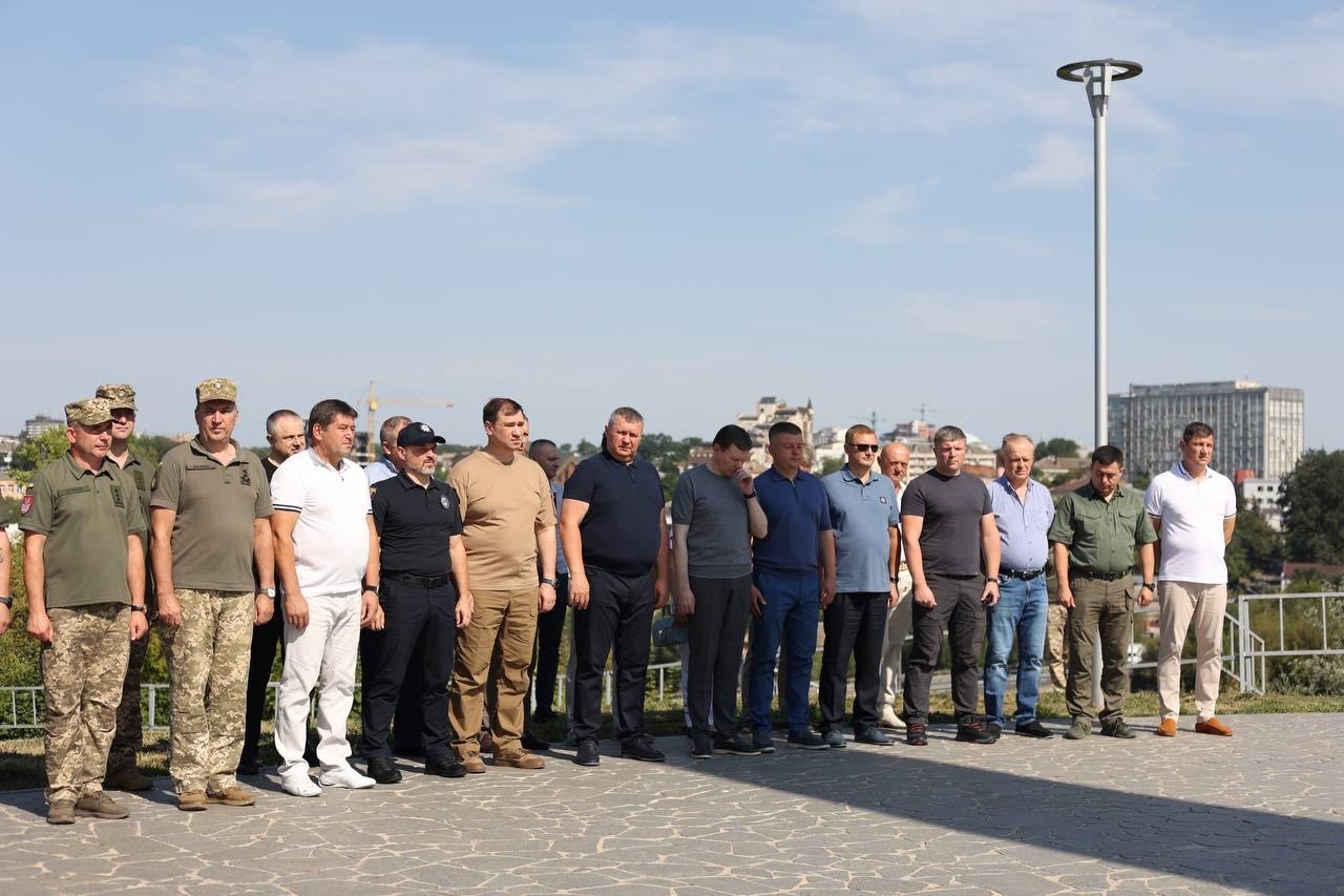 Після урочистого підняття Державного Прапора присутні схилили голови у скорботі, вшановуючи хвилиною мовчання подвиг усіх хто загинув за Україну, її державний суверенітет та територіальну цілісність.