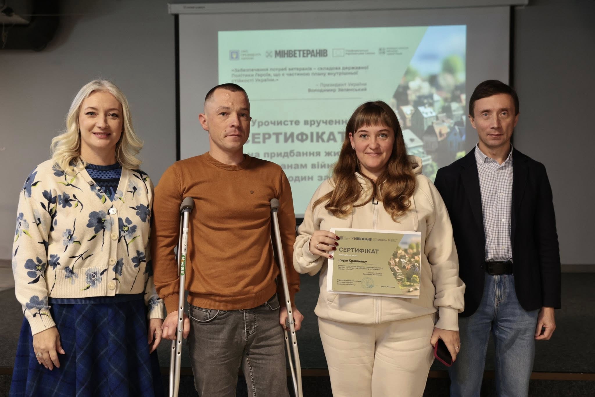 Вручення сертифікатів на житло стало можливим завдяки Президенту України Володимиру Зеленському, Кабінету Міністрів України, Мінветеранів за фінансової підтримки Європейського Союзу в рамках реалізації інструменту Ukraine Facility European Union in Ukraine.